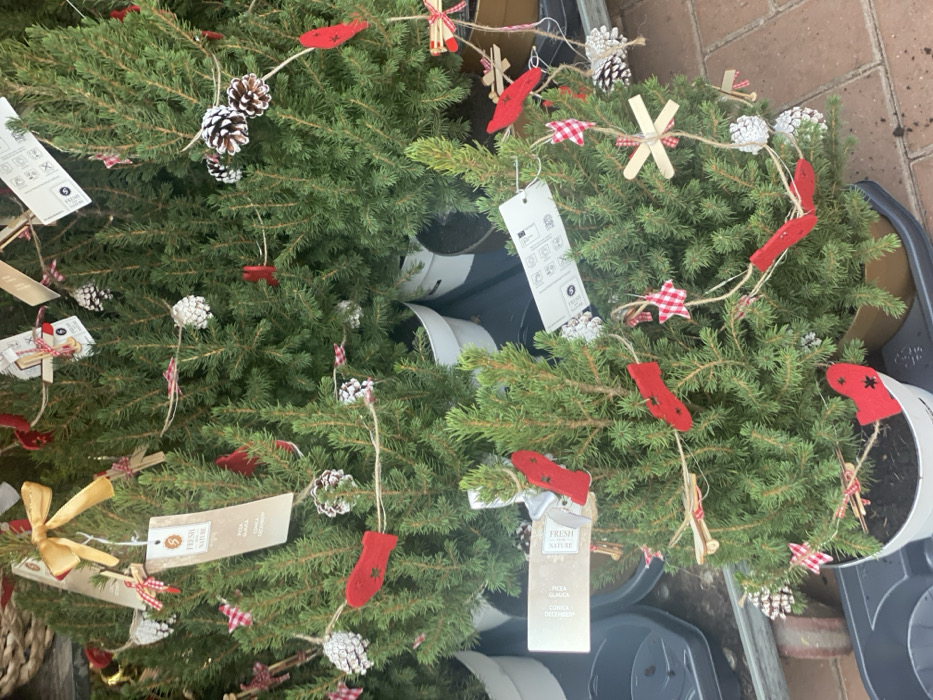 - "A retail display of numerous small, potted Picea glauca 'Conica' (dwarf white spruce) trees is depicted in Mouscron, Belgium" by FM-xTDQG2, licensed under CC BY 4.0