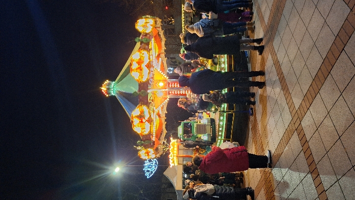 This image depicts a nighttime scene at an outdoor public event in Ignalina, Lithuania