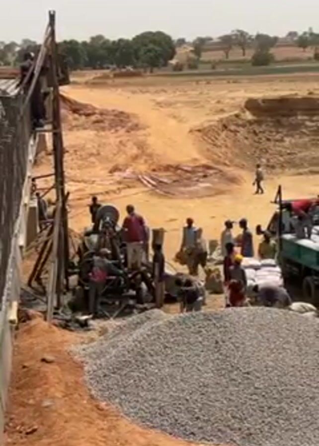 The camera gives a medium shot of a construction site