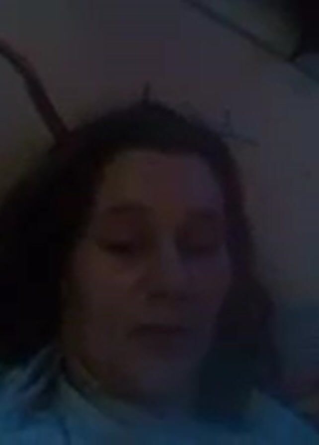 person lying in bed with the camera close to their face. The person has long, brown hair. They are wearing a light blue shirt. They say, "I'm a tattoo artist on bed rest due to a broken foot, and I'm a regular artist." The video is darkly lit.