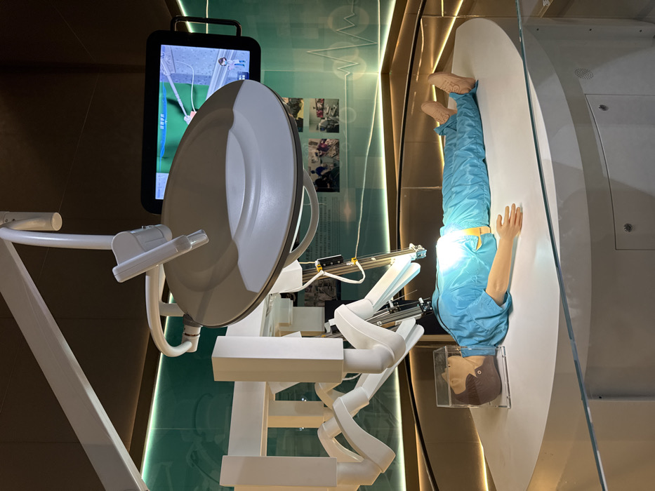 The image depicts a medical technology exhibition display located in Guangming District, China