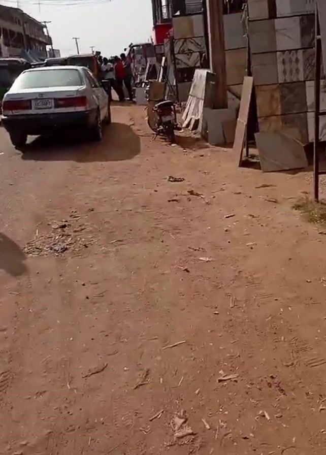 The video depicts a dusty, unpaved roadside scene, likely in a less developed area
