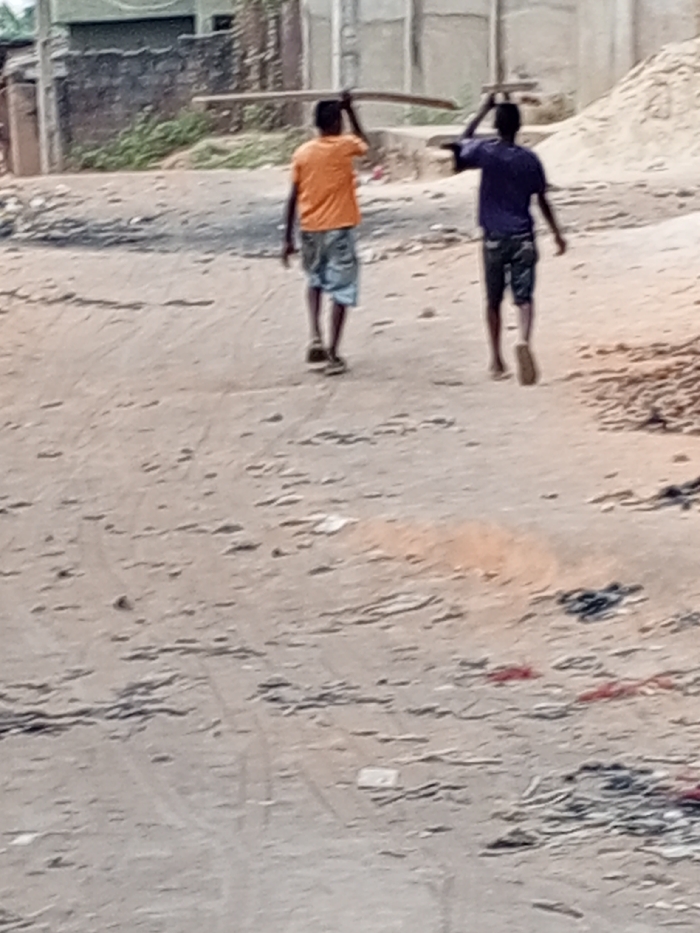 - "Two individuals are depicted walking away from the viewer on an unpaved, dusty road in Onitsha, Nigeria" by FM-KqLB22, licensed under CC BY 4.0