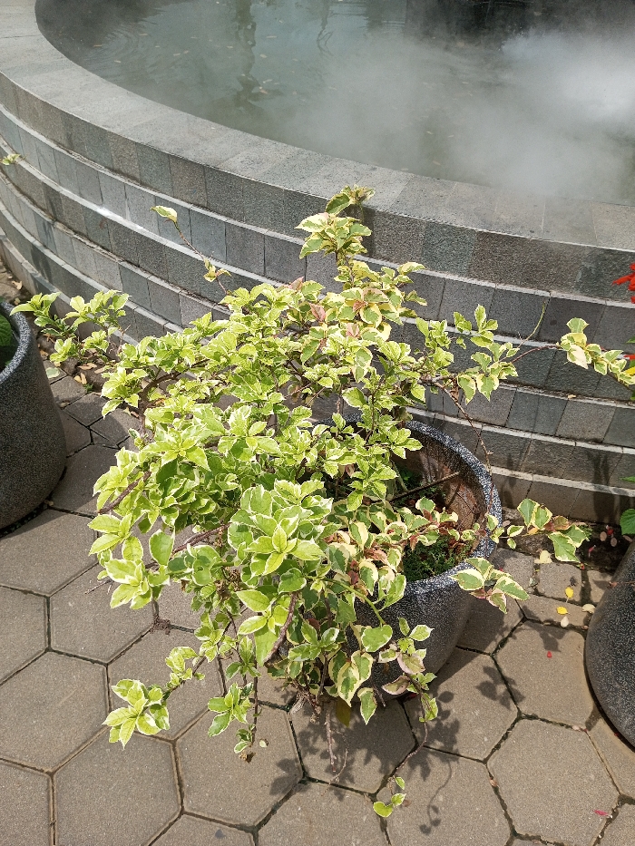 - "The image displays an outdoor scene in the city of Tân Kỳ Commune, Vietnam, featuring a variegated ornamental plant in a dark gray, textured pot" by FM-nNifI2, licensed under CC BY 4.0