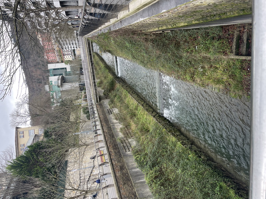 - "The image depicts an elevated view of the Ego River, channelized, flowing through an urban area of Eibar, Spain, under an overcast sky" by FM-ekT8x1, licensed under CC BY 4.0