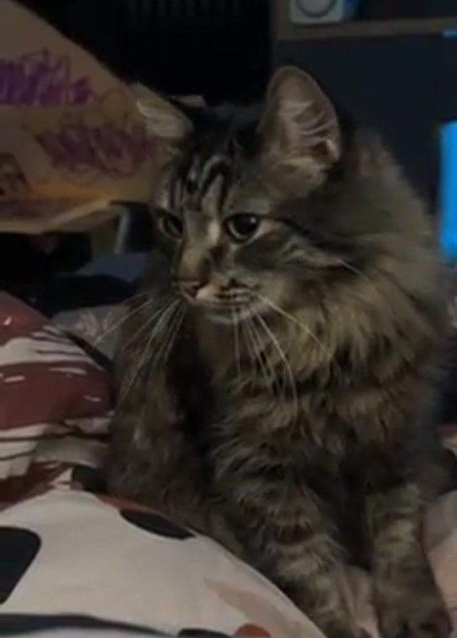 - "long-haired tabby cat sitting on a bed" by FM-3Dhpl2, licensed under CC BY 4.0
