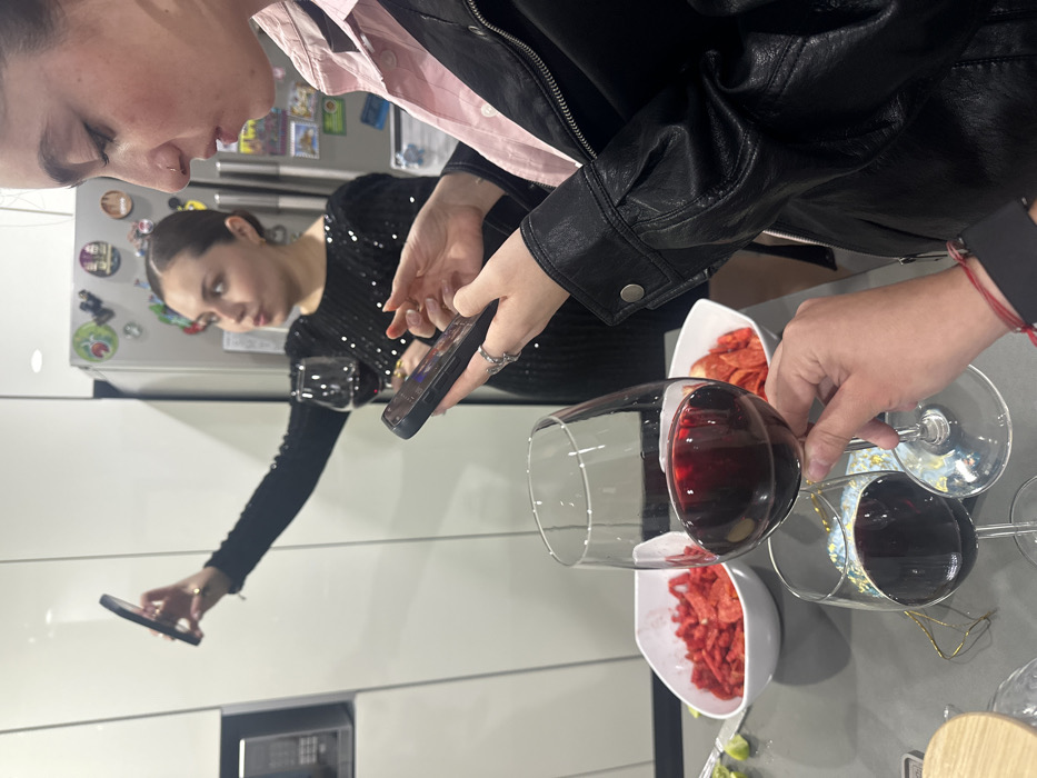 - "A group gathers with glasses of red wine, a bowl of what appear to be Takis, and smartphones" by FM-OKeT52, licensed under CC BY 4.0