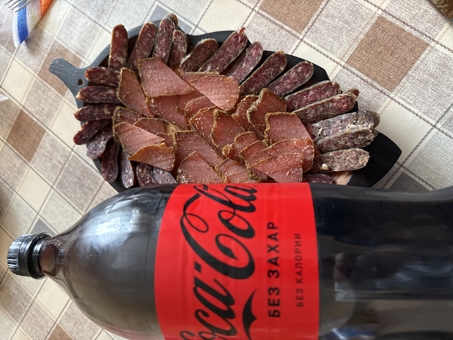 - "An overhead shot captured in Ihtiman, Bulgaria, depicts a casual dining arrangement featuring a large plastic bottle of Coca-Cola Zero Sugar positioned in the foreground, partially obscuring a dark, irregular platter laden with sliced cured meats" by FM-toXsi1, licensed under CC BY 4.0