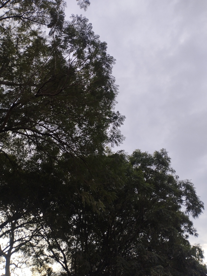 - "The image captures a low-angle perspective of dense tree foliage against a cloudy, overcast sky" by FM-DV2JF3, licensed under CC BY 4.0