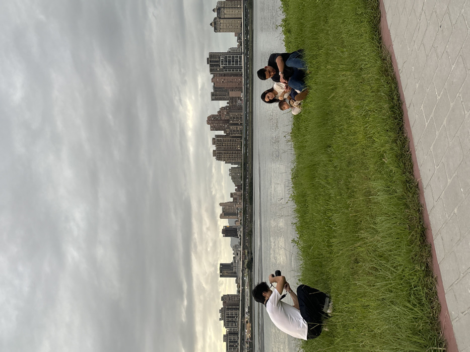 - "An outdoor scene captures a photographic session on a grassy riverbank under an overcast sky along the Tamsui River (淡水河) in Taipei, Taiwan, looking towards the cityscape of New Taipei City" by FM-bmo3E3, licensed under CC BY 4.0