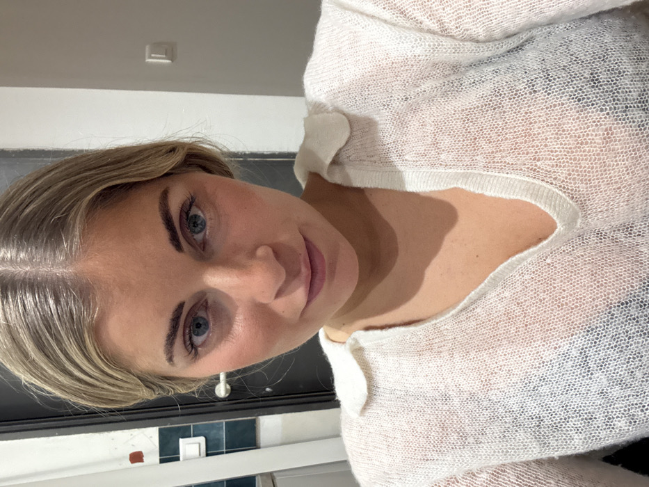 - "A fair-skinned woman with blonde hair and blue eyes faces the camera" by FM-OZmdD3, licensed under CC BY 4.0