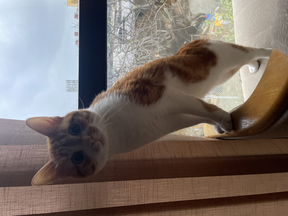 - "A medium-sized domestic cat, displaying orange tabby and white fur patterns, is positioned indoors, looking directly towards the viewer" by FM-aSEY13, licensed under CC BY 4.0