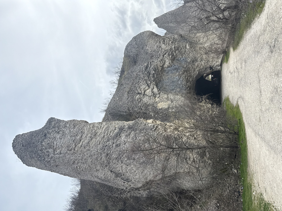 The scene depicts a natural rock formation in Asparuhovo, Bulgaria