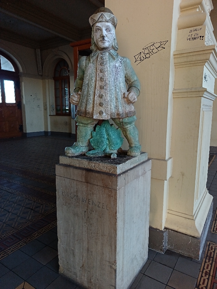 - "The image displays a weathered statue, identified as "GRÜN WENZEL," situated indoors on a rectangular stone pedestal" by FM-rFWs12, licensed under CC BY 4.0