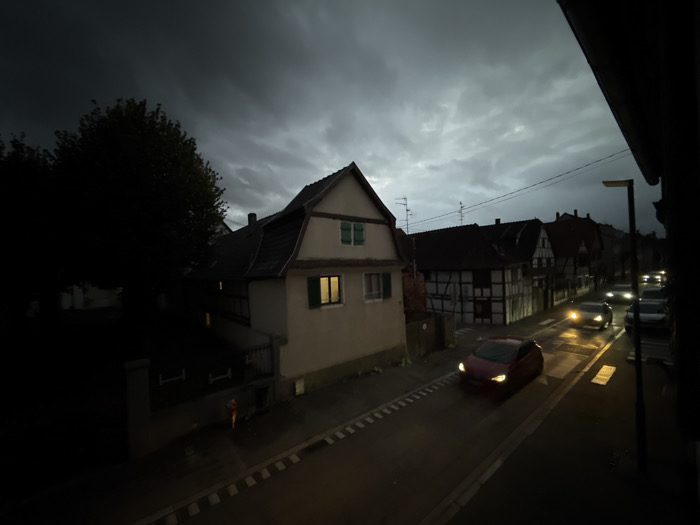 - "The image depicts a street scene in Brumath, France, at dusk or night, under a heavily overcast, dark gray sky" by FM-JDMdX2, licensed under CC BY 4.0