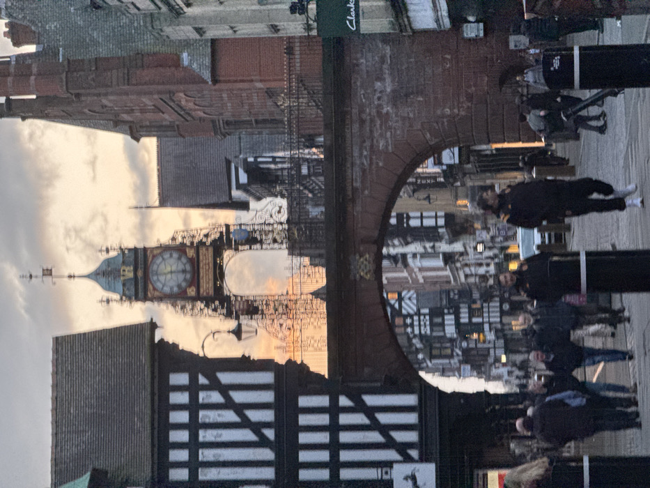 - "The image displays a street scene in Chester, United Kingdom, centered on the Eastgate Clock during dusk or early evening" by FM-NSr363, licensed under CC BY 4.0