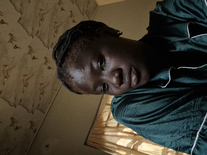A frontal, waist-up portrait captures an individual situated indoors in Yelwa, Nigeria