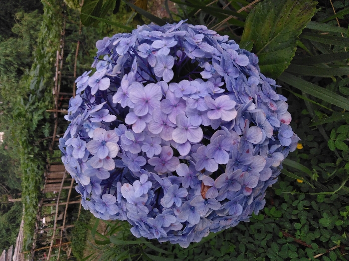 - "A large, spherical cluster of light blue and lavender hydrangea flowers is prominently displayed in the center of the image, occupying a significant portion of the frame" by FM-YNKRr1, licensed under CC BY 4.0