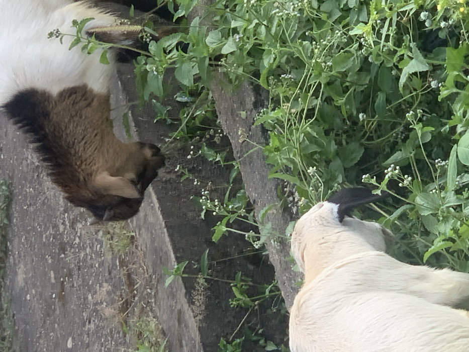 - "Two goats graze along a concrete curb covered in weeds" by FM-hvFoF3, licensed under CC BY 4.0