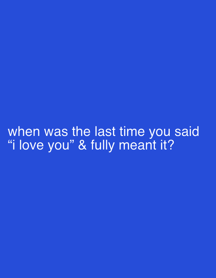 The image contains a solid blue background with the white text: “when was the last time you said “i love you” & fully meant it?” There are no people or objects visible in the image