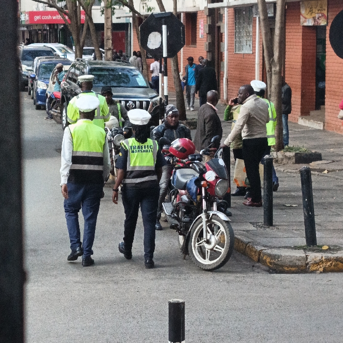 This image depicts a daytime urban street scene in Nairobi, Kenya
