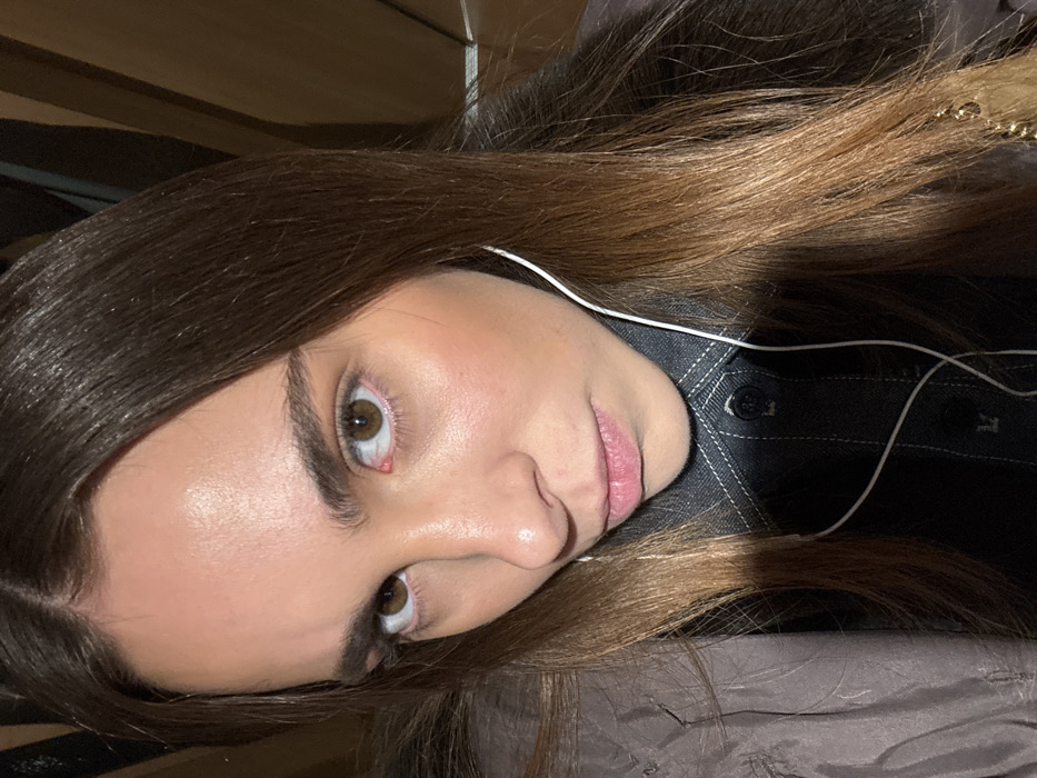 A female individual is captured in a close-up, front-facing selfie