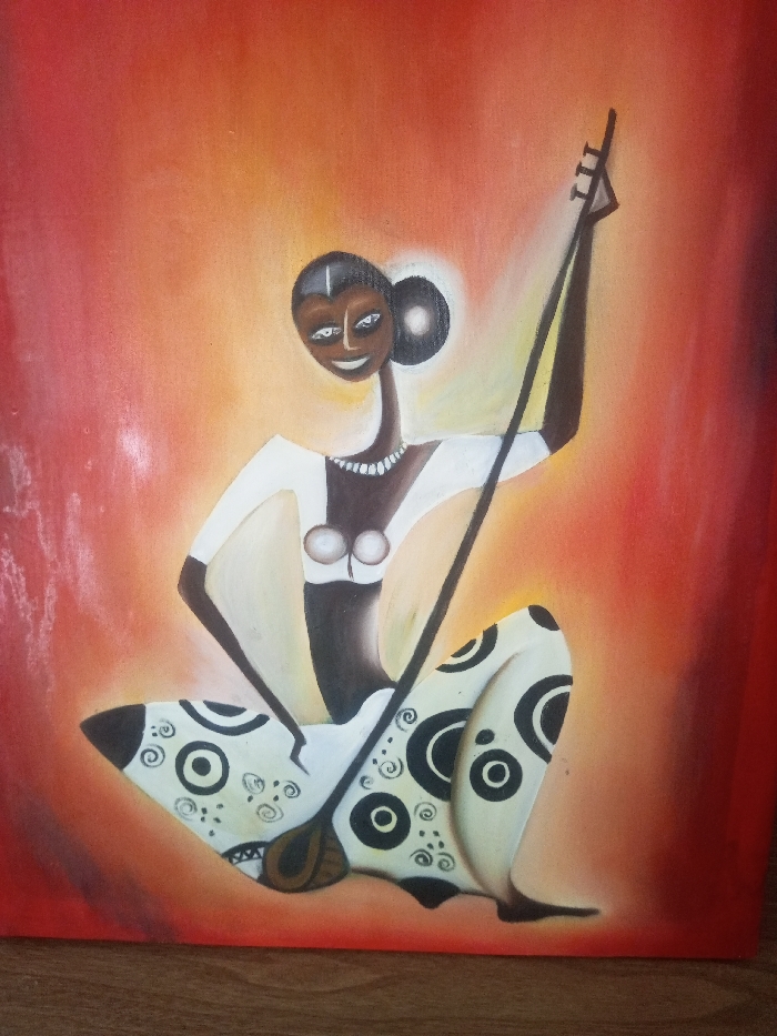 This image displays a stylized painting, located in the city of Gura Top, Nigeria
