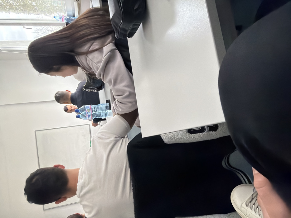 The image depicts an indoor classroom or seminar setting in Sofia, Bulgaria