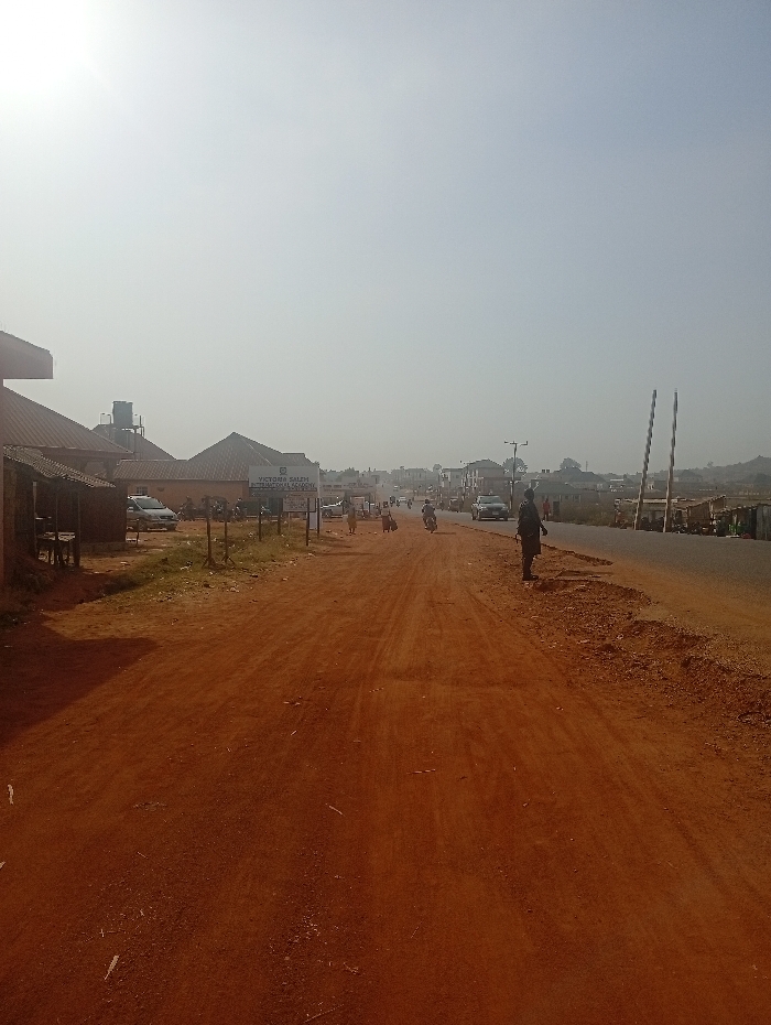- "This image depicts a wide-angle, daylight scene in Barakin Sabawa, Nigeria, centered on a dusty, reddish-brown unpaved road merging with a paved thoroughfare" by FM-a7CDG3, licensed under CC BY 4.0