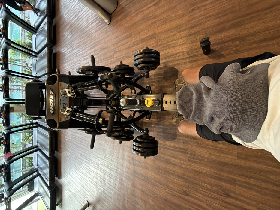 - "A top-down shot features a Hoist fitness machine, stacked with weights, situated on a wood-grain floor" by FM-RjPGA3, licensed under CC BY 4.0