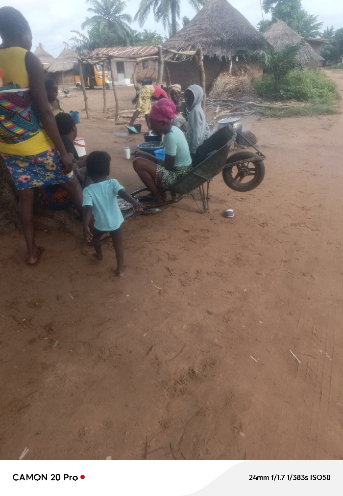 - "The image depicts an outdoor scene in Markurdi, Nigeria, characterized by a group of individuals engaged in daily activities on reddish-brown dirt ground" by FM-dR4Vw2, licensed under CC BY 4.0