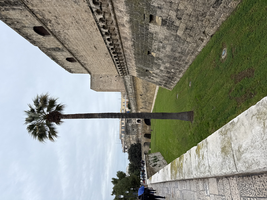 The image depicts a section of the Castello Svevo in Bari, Italy