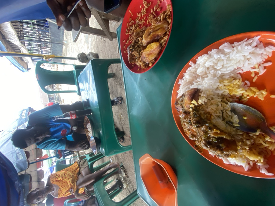 - "The image depicts an outdoor dining establishment in Naze, Nigeria, operating under a blue and white striped canopy" by FM-BdfqB3, licensed under CC BY 4.0