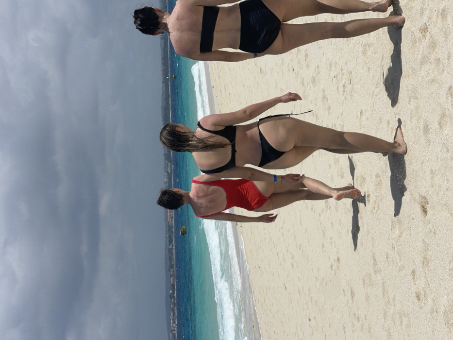- "Three adult females are observed from behind, walking barefoot from left to right across a sandy beach" by FM-AKus83, licensed under CC BY 4.0