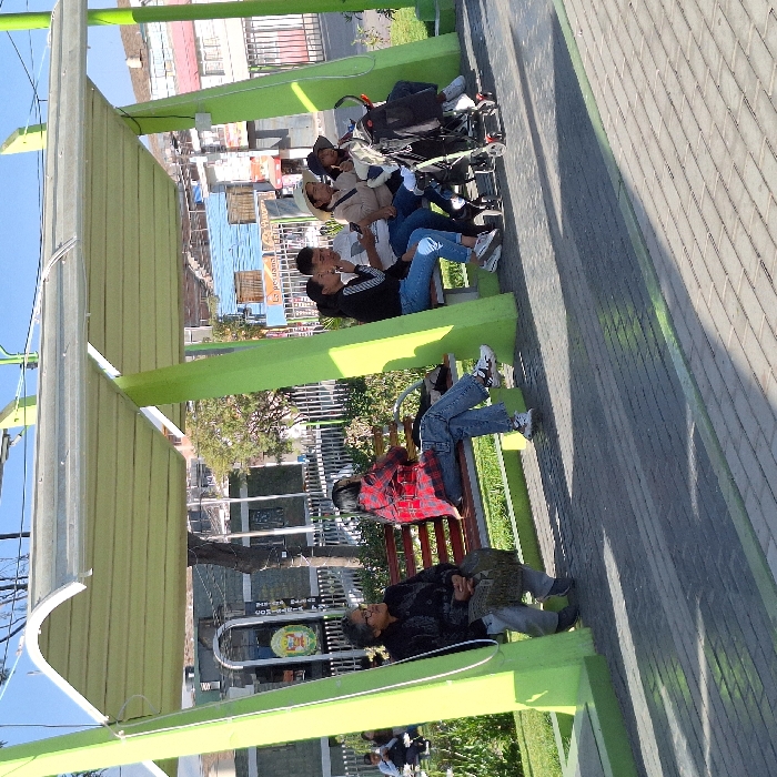 - "People rest on public benches under a green structure with a translucent roof" by FM-b0Aw43, licensed under CC BY 4.0