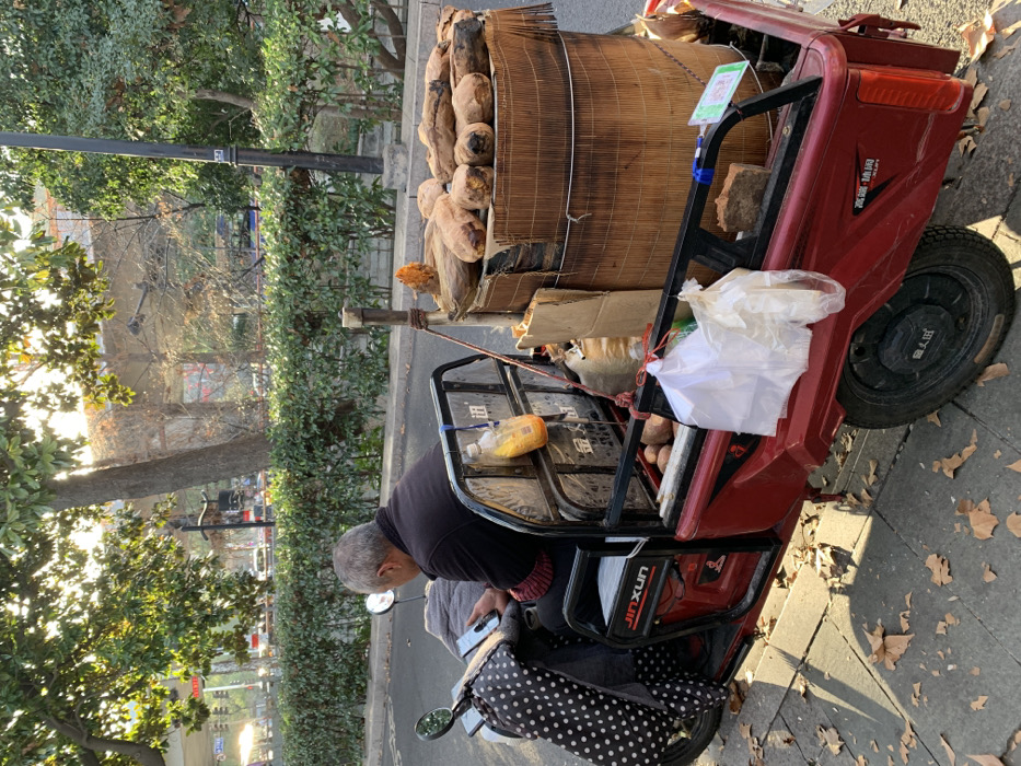 - "An elderly male, viewed from behind, is seated on a red JINXUN three-wheeled electric tricycle parked on a paved surface scattered with dry leaves in Shangcheng District, China" by FM-R7dQ13, licensed under CC BY 4.0