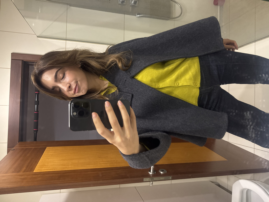 - "A young adult female, depicted from the mid-thighs up, is taking a mirror selfie in what appears to be a bathroom in Nogueira e Silva Escura, Portugal" by FM-6wyrF3, licensed under CC BY 4.0
