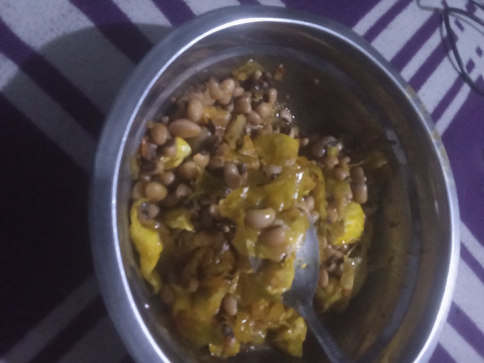- "A stainless steel bowl contains a mixture of cooked black-eyed peas and yellow squash" by FM-dPSF82, licensed under CC BY 4.0