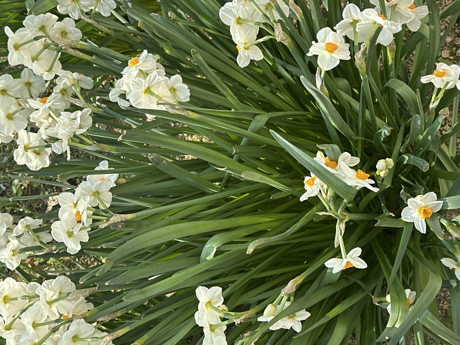 - "The image presents a close-up, high-angle view of a dense cluster of white daffodils, consistent with a multi-headed variety like Narcissus tazetta" by FM-vN6QQ2, licensed under CC BY 4.0