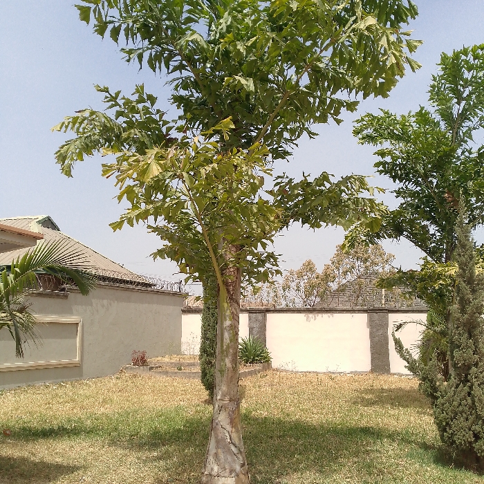 The image displays an outdoor residential or compound area in Rayfield, Nigeria, under a clear, light blue sky