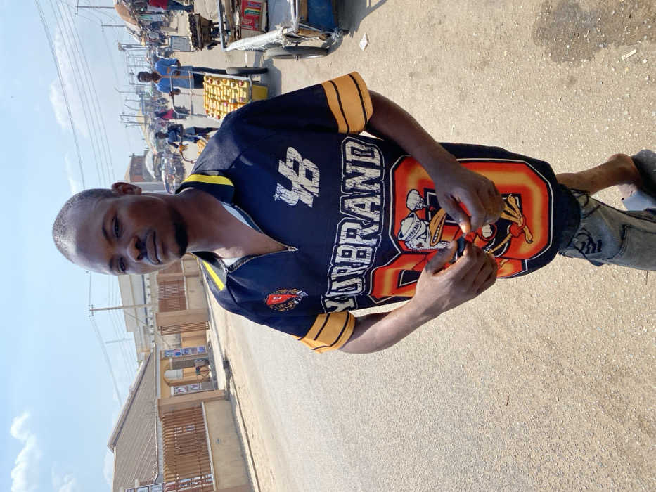 The image presents an outdoor street scene in Lokoja, Nigeria, under clear daylight conditions