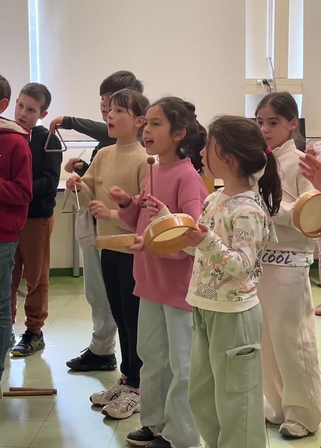 - "A group of approximately eight children stand in a line in what appears to be a classroom, performing music with various percussion instruments" by FM-vTiXm2, licensed under CC BY 4.0