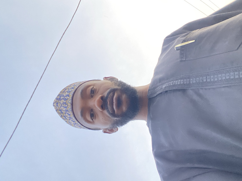 - "A man with a beard and a patterned kufi looks down at the camera" by FM-fcz9g1, licensed under CC BY 4.0