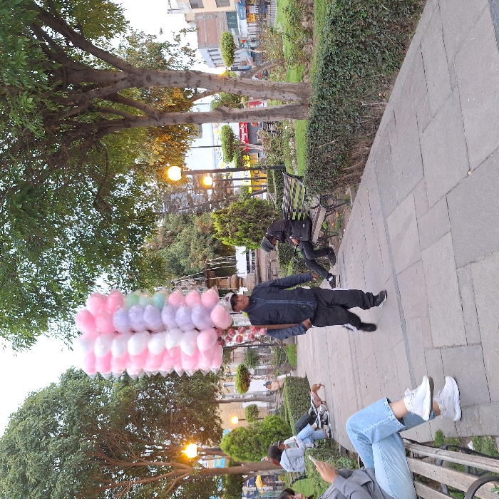 - "A street vendor carries a large bunch of colorful cotton candy in a park" by FM-b0Aw43, licensed under CC BY 4.0