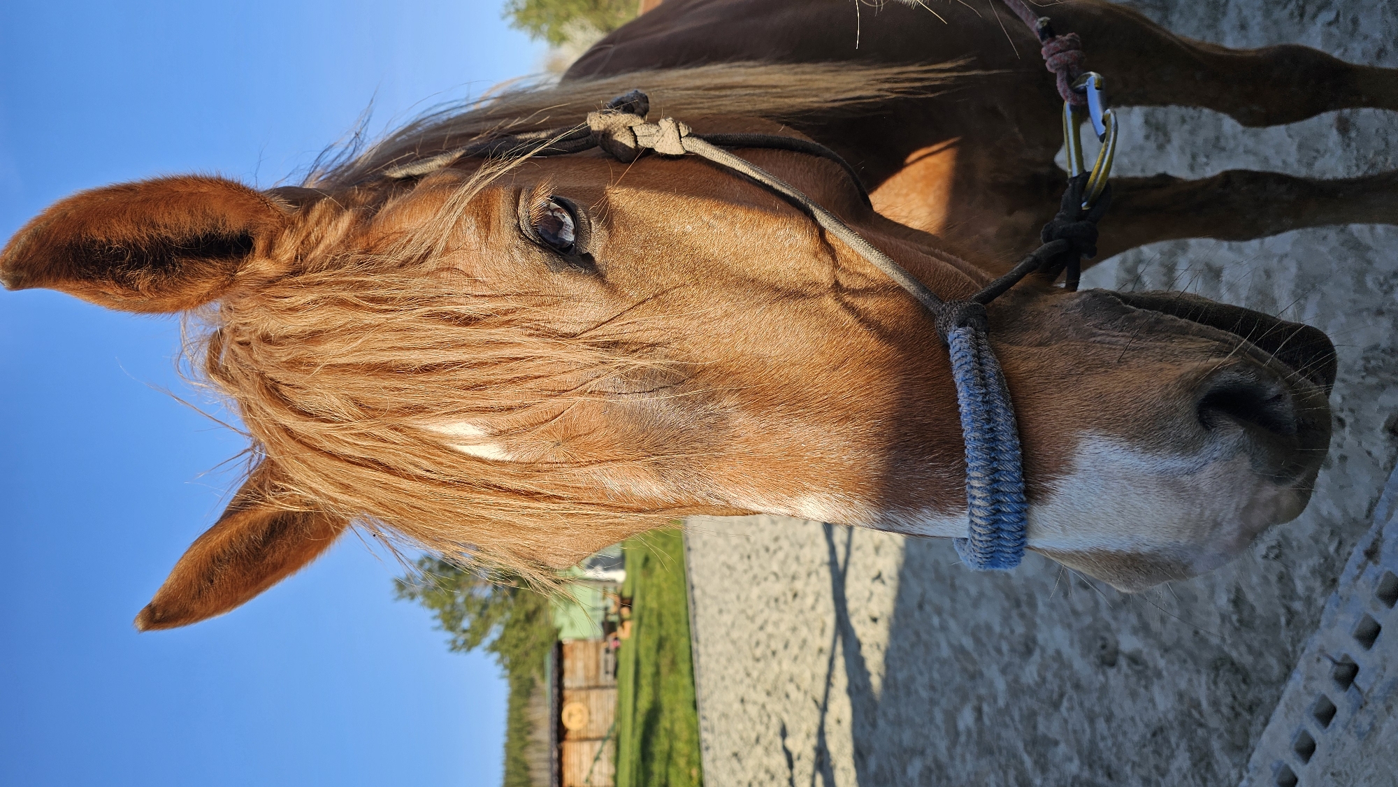 - "A close-up, outdoor, horizontally oriented photograph shows the head and upper body of a reddish-brown horse in Kovachevtsi, Bulgaria" by FM-gPkzG2, licensed under CC BY 4.0