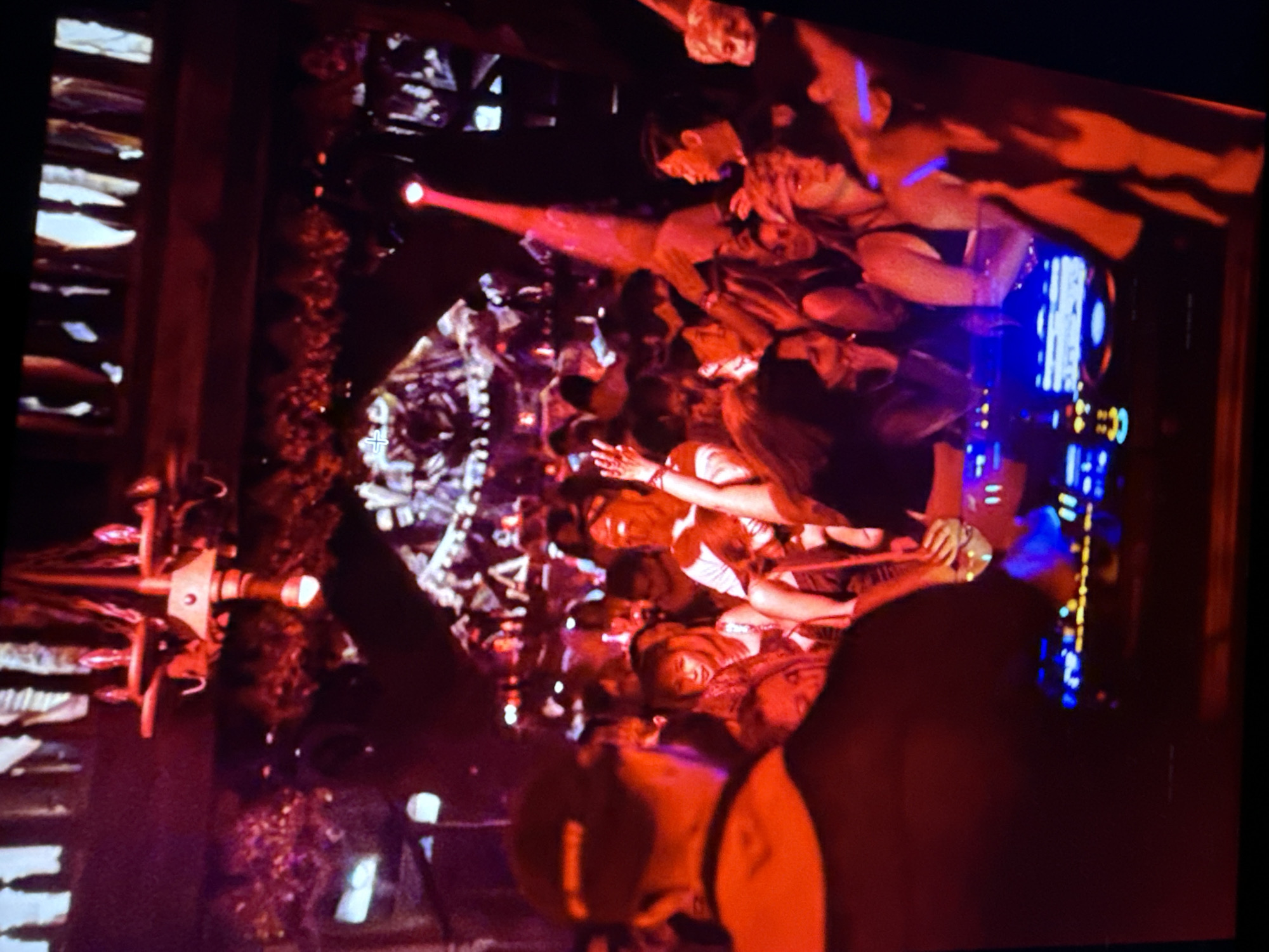 The image depicts a crowded indoor space, possibly a nightclub or bar, in North Kuta, Indonesia