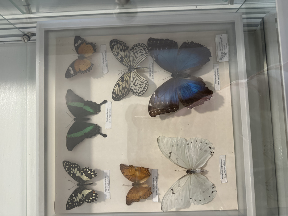 - "An entomological display case, white-framed and featuring a clear glass front, contains eight pinned butterfly specimens" by FM-bZlkN2, licensed under CC BY 4.0