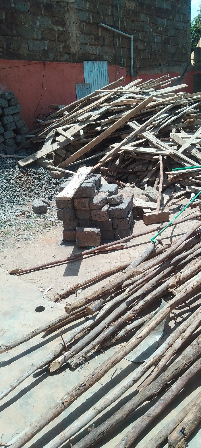The image depicts an outdoor construction or storage area in Nairobi, Kenya