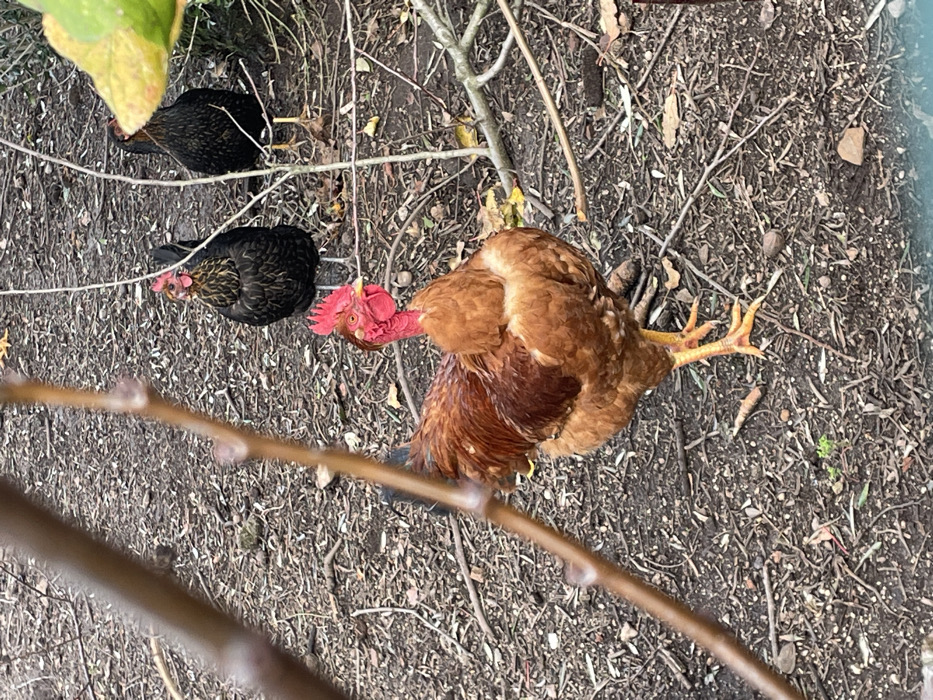 - "An outdoor scene in Barcelos, Portugal, features three chickens on a dirt ground covered with dried leaves, twigs, and sparse debris" by FM-aSc183, licensed under CC BY 4.0