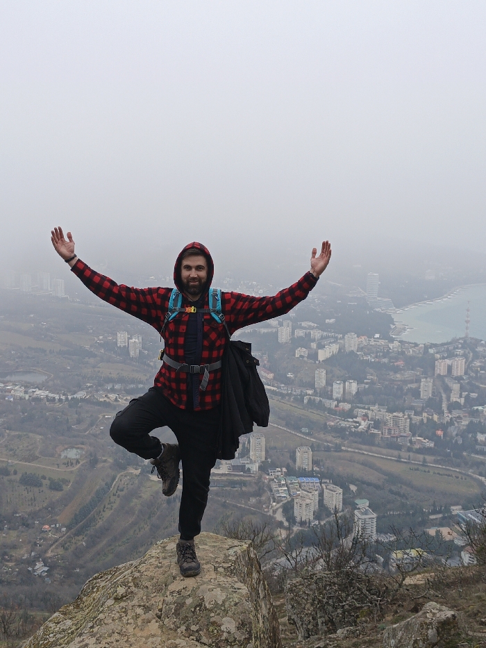 - "The image depicts a male individual standing on a rock formation at an elevated vantage point overlooking the city of Partenit, Ukraine" by FM-YVp303, licensed under CC BY 4.0
